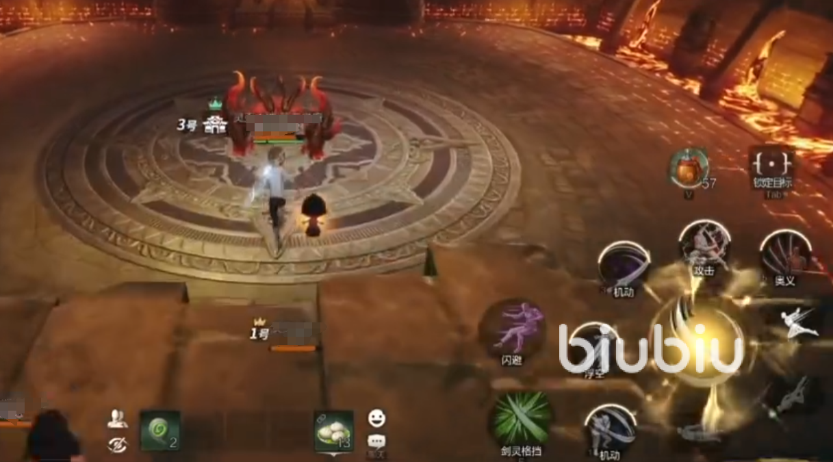 不过这时候他的头顶上会出现一个危字,就说明他正在处于愤怒并且攻击的状态。我们打完一套之后他就会后退,而且朝着前方不断用自己的嘴巴喷出直线火焰。那我们可以朝着他的身边继续攻击,因为他输出期间并不能被打断。