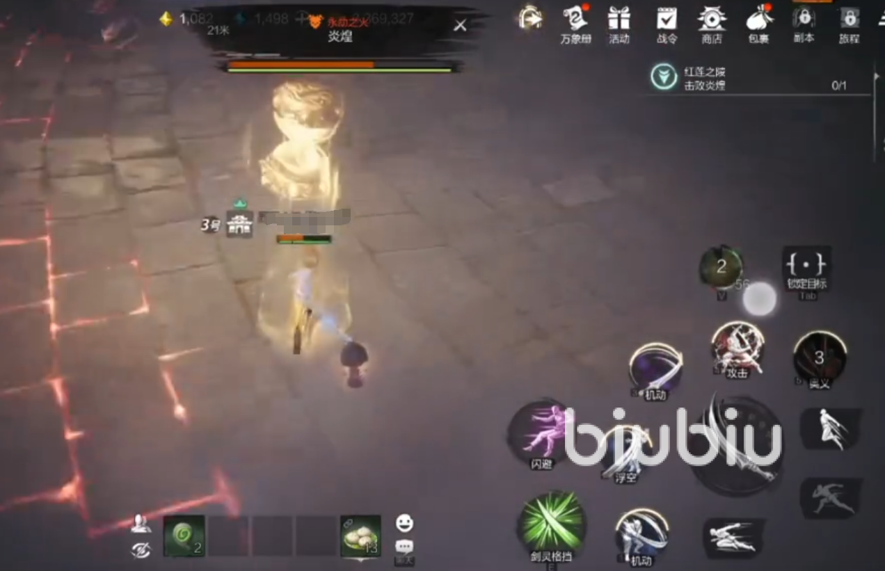 接着我们继续前行,朝着前方的道路四处乱窜。之后我们就会遇见这个副本中的最终boss—炎煌,Boss的体型非常硕大,而且伤害又高。主打的就是火属性范围输出,去之后他处于懵逼状态,所以我们完全可以将自己能力释放,避免错过最佳输出时期。