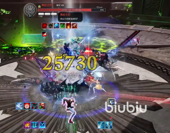 然后就是大范围的毒气攻击,这个攻击是比较致命的,躲避的方法选择在boss的周围或者直接撤离到边缘位置进行躲避,等这些技能释放完毕以后,黑沙女王就会处于停顿状态,这时候所有人就可以开始火力输出了。
