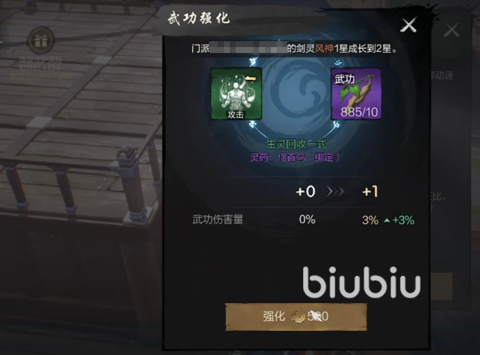 要是大家拥有更多的秘籍碎片的话,可以进行武功进化。当你成功将其进化之后,可以提升这招武功的威力。比如加一的话,就可以提升武功3%的伤害。每次进化都需要耗费500金币,当然如果你的等级越高的话,所需要耗费的金币量也会越多。