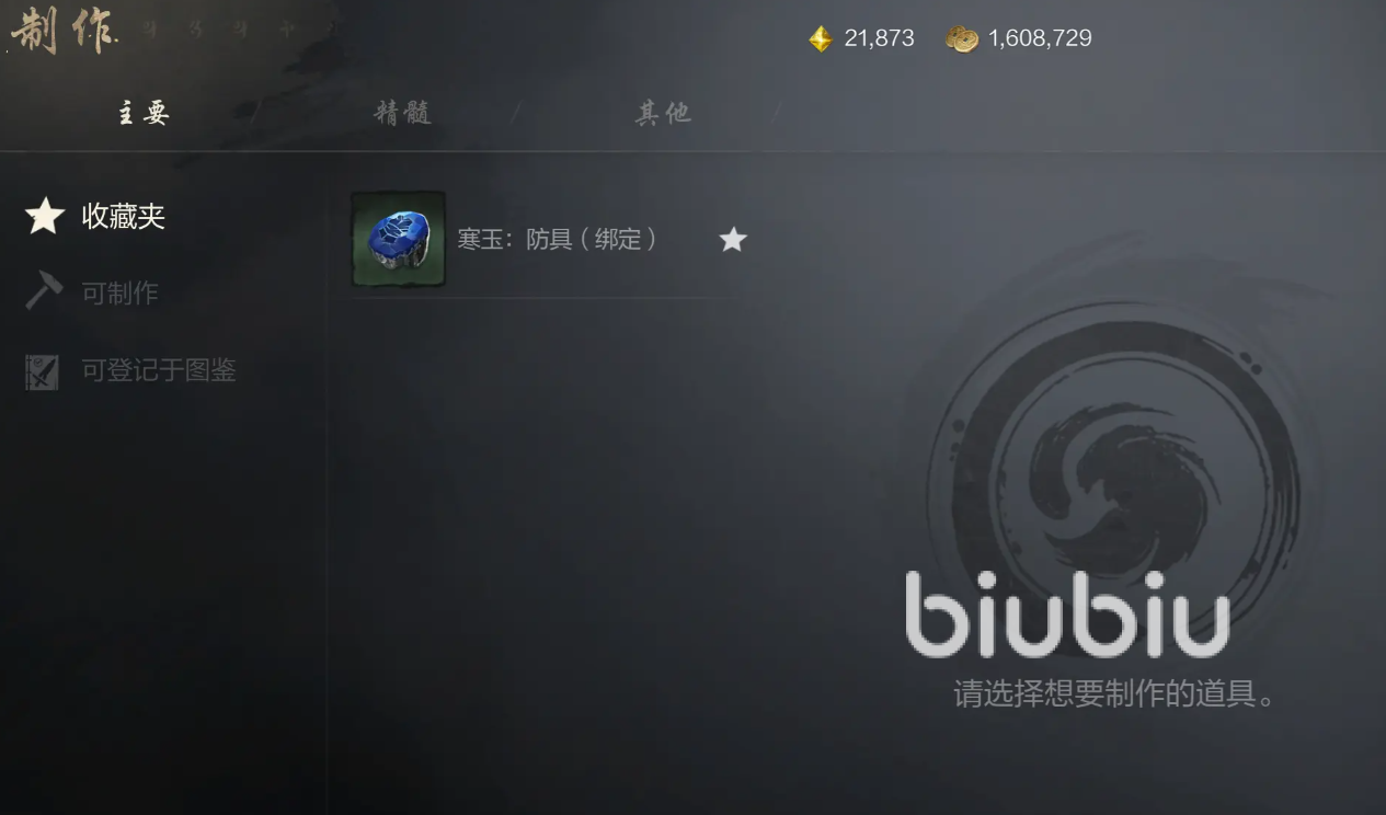 制作系统一共分为三个板块,分别为主要、精髓以及其他,在不同的板块当中。我们可以在不一样的子分类中,找到自己所需要制作的东西。主要板块的话,就包括着游戏中大部分的道具。然后这里还会提供一个收藏夹,会优先展示大家所收藏东西。