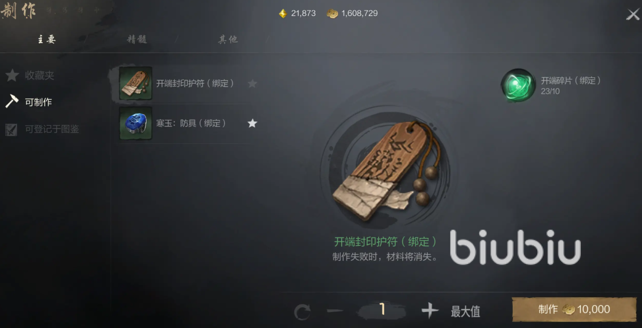 再次点击的话就可以取消收藏,当你的资源碎片数量充足,就可以在主要页面中展示你当前可制作的东西,如此一来就不需要费力的寻找。然后这里只会展示在可登记图鉴上面,当你成功制作出来的话,那么便会永久的展示在图鉴上面,要是想找的话可以直接看到。