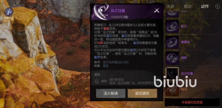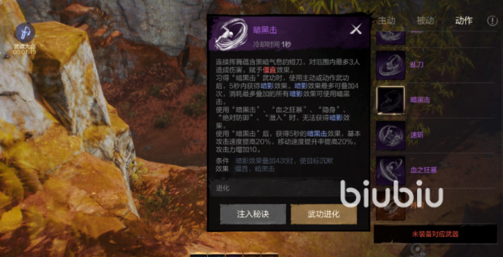 如果是想自动战斗,那么武功选择方面,隐身只能是手动,其它4个技能都可以设置成自动,只需注意的进战连续点3技能暗袭连携上动作武功(F)再接月闪就可以确保打出伤害。