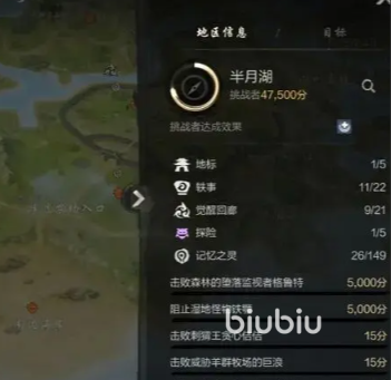 在获得属性加成后就可以退出图鉴了,退出后需要打大地图,在大地图中大家可以随便找一个区域查看,通过查看区域大家会发现区域内拥有各种各样的探索玩法,大家需要完成各区域的探索将区域的探索分值打满,打满以后大家再次通过大地图查看区域分后就可以获得该区域的探索奖励了,这奖励中拥有大量的属性加成,可以大幅度提升属性,只要大家做完全区域的探索,那么属性就会爆涨。