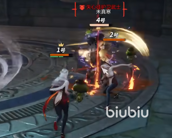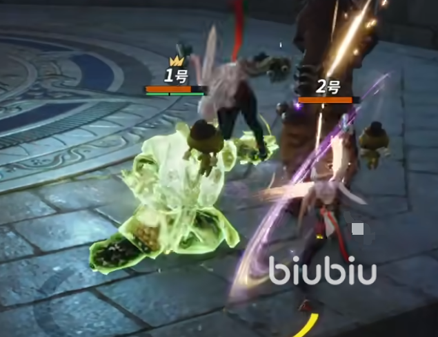 一定不能让这技能打到队伍中,随后将小的打掉一定状态后它就会跳到场中释放三次拍地板技能需要躲避,之后它会进入到虚弱状态,需要在该状态下输出,打完后需要回头去打小的boss,然后无限循环击杀它们两个。