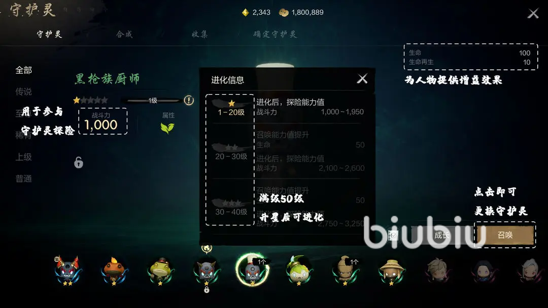 守护灵能给角色提供增益,平时在身边也是一种陪伴,守护灵每次只能携带1只,能随时通过召唤的方式更改守护灵。守护灵探险可以让其进行升级,最高能升到50技,升级可以增强它们的战斗力,能参与更加危险的探险,20级之后每10级就能升星进化,提高对角色的增益效果。