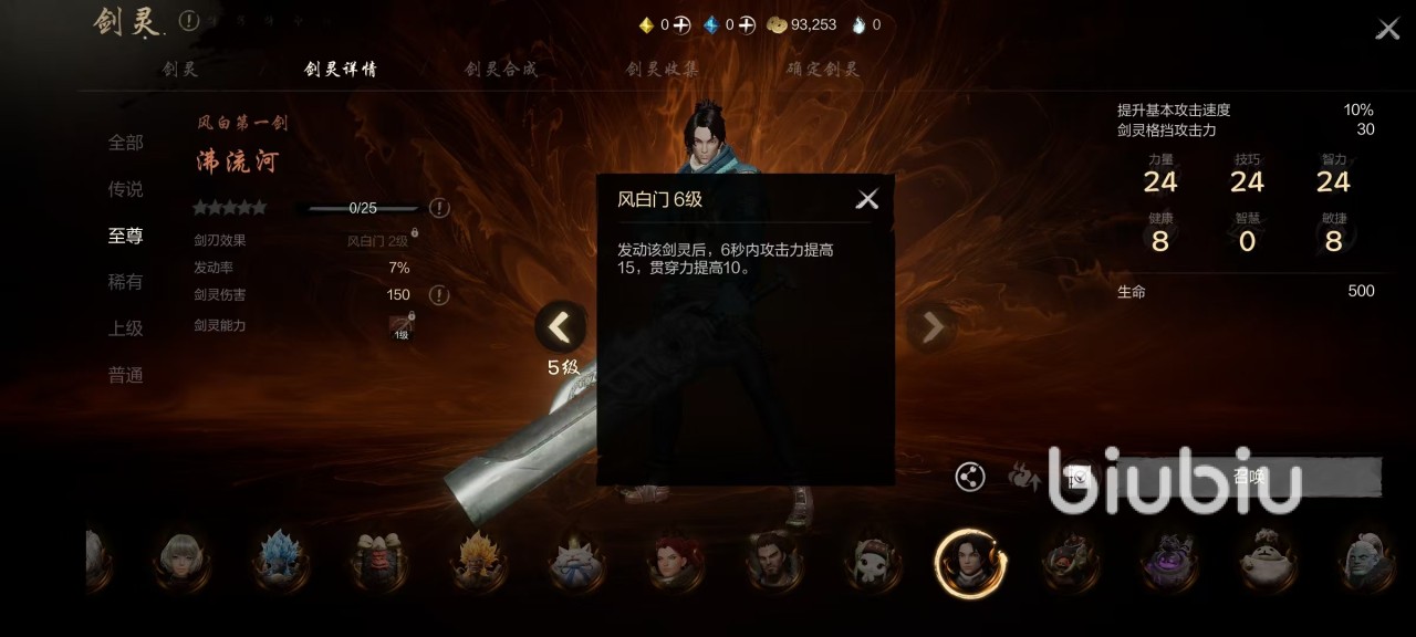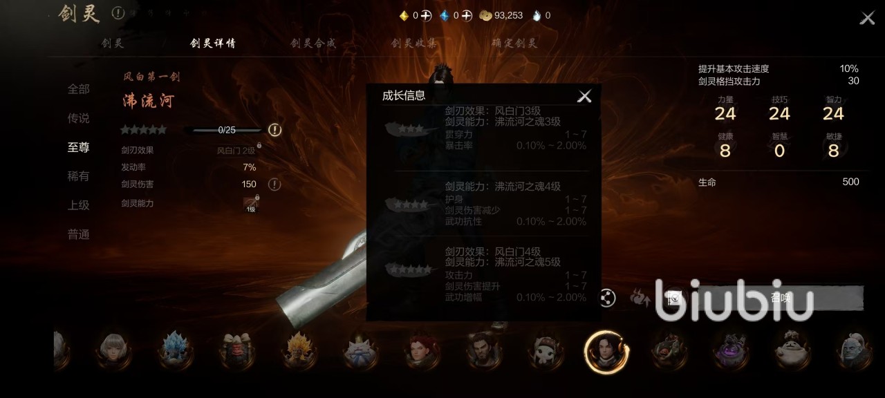 风白第一剑是属于至尊品质,在属性方面仅次于传说,对于大多数玩家来说,这一品质的剑灵都是完全值得培养的,即使不作为主剑灵,也一定会成为附属剑灵帮助战斗。风白第一剑的剑灵效果是提升力量、技巧和智力均24点,还有8点健康和8点敏捷,以及10%基本攻击速度提升和30点剑灵格挡攻击力提升,还有500点生命值。