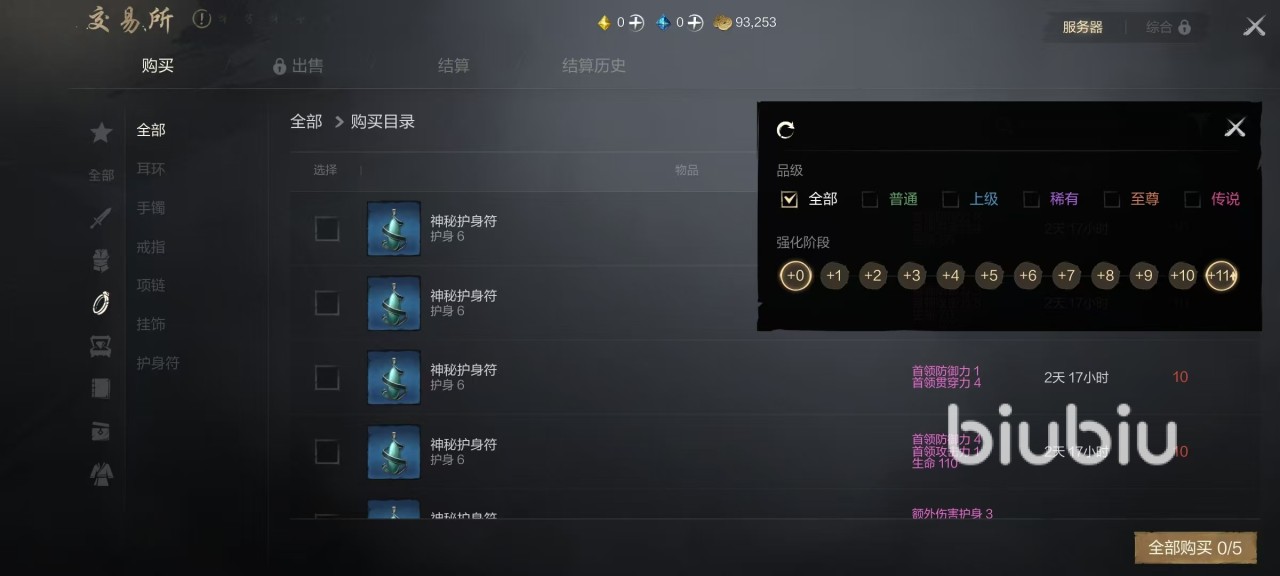 要想找到神石买卖玩法,首先打开主页面,不要点击商店,而是找到交易所,交易所才是玩家之间进行交易的地方。这里是玩家和玩家之间互换资源的系统,是以神石为交易单位,在购买界面,可以根据自己需求,选择不同分类,也可以通过点击搜索的方式,进行有针对性的购买和筛选。例如能够利用筛选,快速找到自己需要的物品品级和强化阶段,遇到一些心仪的物品还可以点击量星号,收藏起来方便后续进行随时查看。