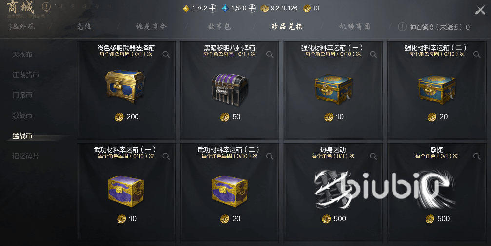 讲解完猛战币的获取方式以后,再给大家科普一下要怎么正确的使用猛战币,不浪费资源。商店里出售装备、技能书等一系列不同的道具,优先去换书,利用这种方式能快速地给自己的技能升级,因为PVP玩法里面属性是相同的,但是学会的技能是不同的,所以技能等级越高,往后打PVP的时候就越沾光,书换完了再去考虑装备的事情,其它道具除非是急用,不然不建议兑换。