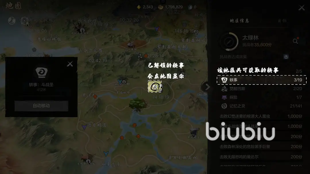 轶事散布在地图的各个敌方,如果没有激活石碑,那地图上就无法找到,只有接触了石碑之后,地图上面才会显示标记。现在的轶事大概有12种不同的内容,每种对应的数量也是不同的,可以根据自己想要了解的故事,去收集对应的轶事。