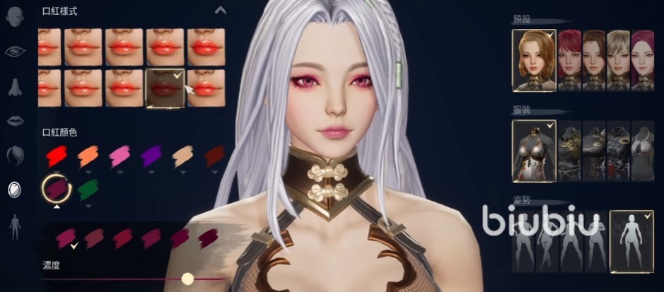 如果你不懂怎么捏脸,可以直接采用预设,有帮你配好的捏脸,同时还有好几套可供选择的服装以及站姿,大家可以逐个试一试,看看不同的效果,怎么搭配会比较好看,可以省下不少时间。