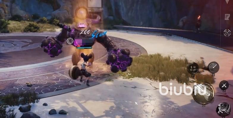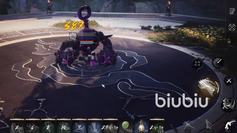 接着是45级的守卫,它的范围攻击相当惊人,初始阶段玩家需不断移动走位以躲避攻击,确保自己不被击中,当出现蓝色光圈时,保持在其外围即可避免伤害。