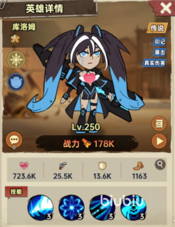 星辰追踪的效果是让库洛姆的攻击对象变为地方前排角色,普通攻击也能给敌方带来一个等同于95%伤害的暴击印记,同时自己获得持续三回合的10%的真伤和暴击效果。最后是时空印记技能,当库洛姆被主动攻击时能提高18%的暴击和7%真伤,效果持续时间为三个回合,同时也会附着一个70%伤害的暴击印记。不难看出库洛姆的技能组中的真伤效果非常明显,这也让她在面对一些拥有高额防御的敌人时有了更多的出场空间。