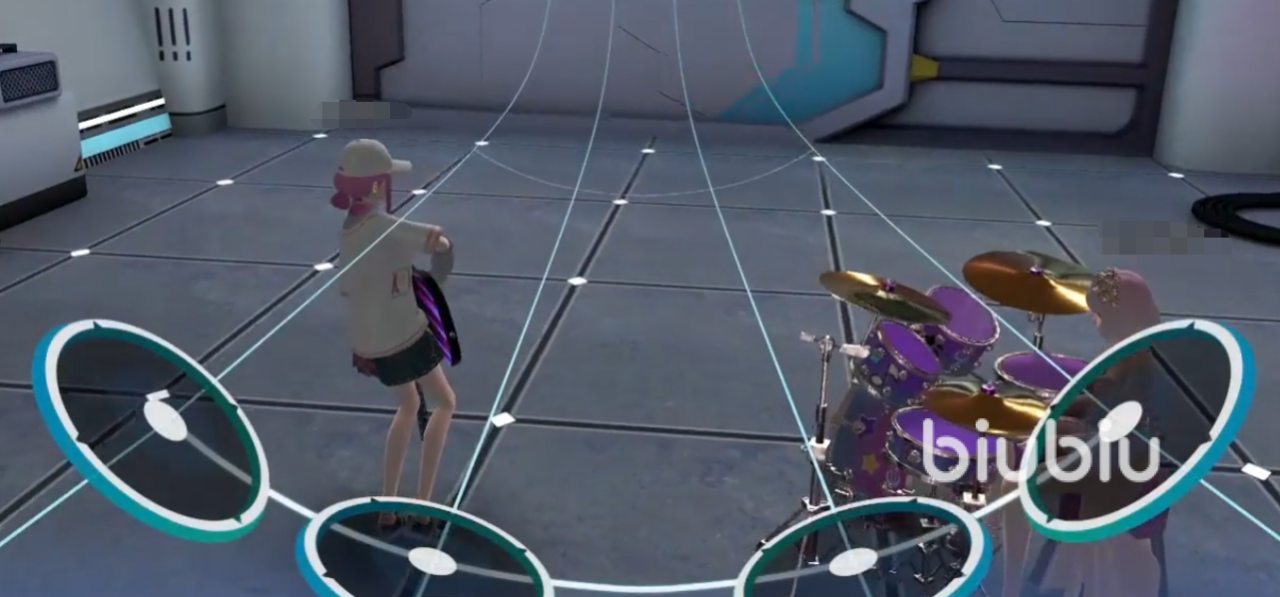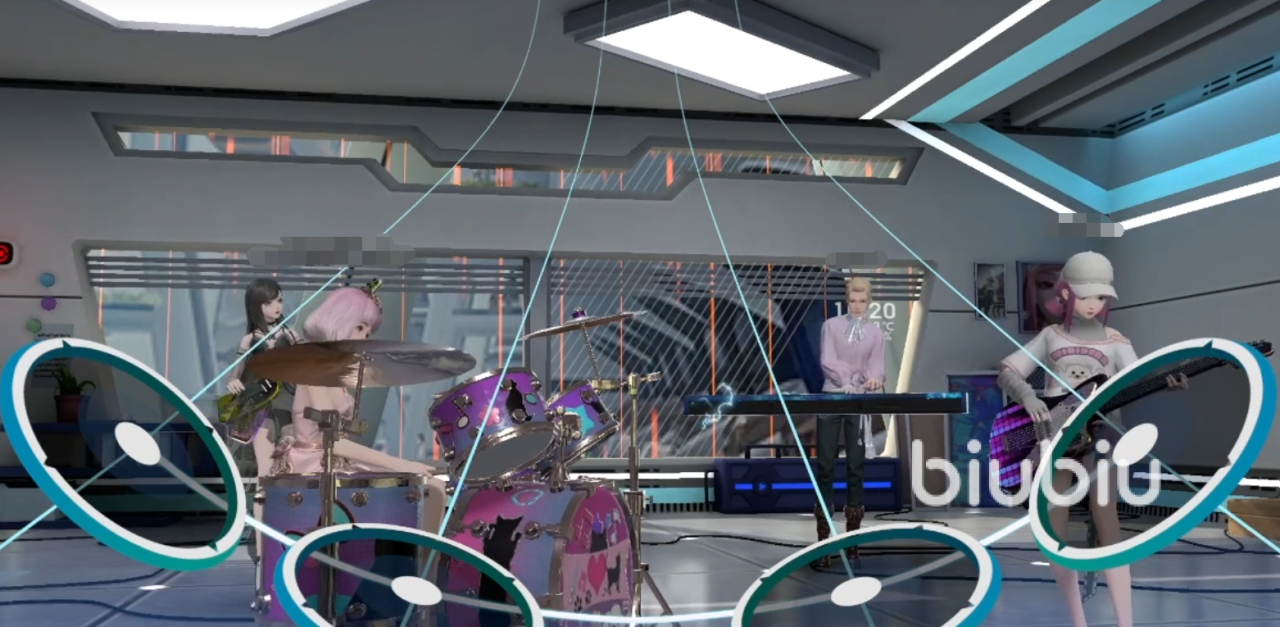 游戏中,每一局玩家都需要和其他几位玩家组成一个乐队,这些乐队成员每一个都有自己的乐器,而这些乐器就决定了之后玩家的操作模式,当玩家看到自己坐在鼓前的时候,那么这一场游戏中大家就会以鼓模式进行。