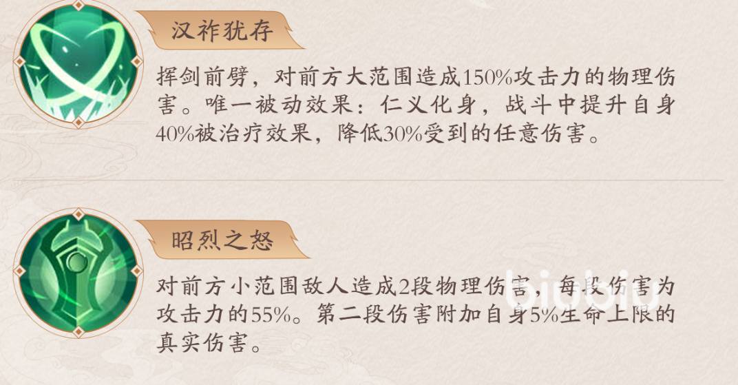 姜维的1技能可以对前方造成一段斩击,这个斩击以后姜维自身可以获得单次伤害的减免,同时受到的治疗比例也会相应提升。