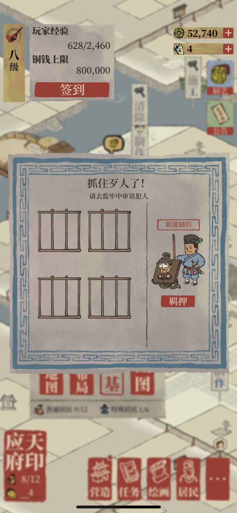 为了全州府老百姓的安全,咱们必须抓到这个盗贼,将他压入大牢。寻找盗贼时,将游戏画面切换到地基模式会更利于我们搜捕盗贼。