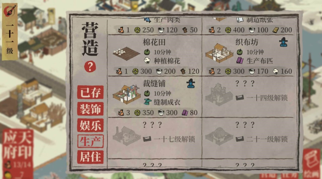 裁缝铺的解锁首先需要玩家等级达到十一级。建造裁缝铺,在主界面右下角的“营造”模块的“生产”列表中,等级符合要求后就会出现裁缝铺的选项。
