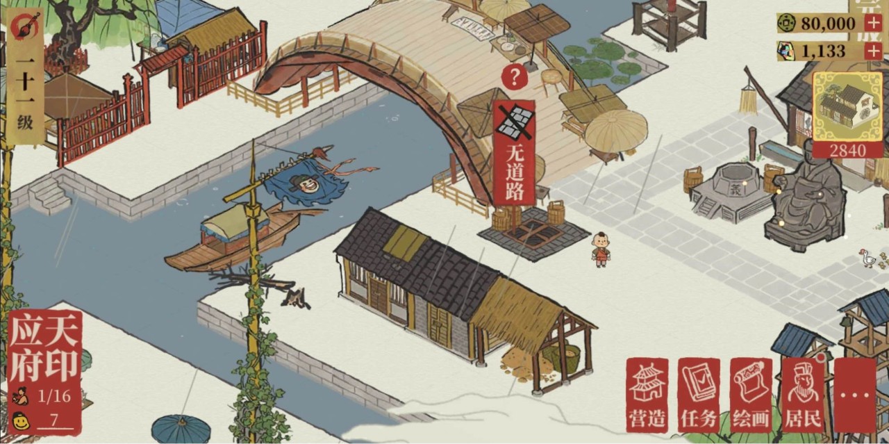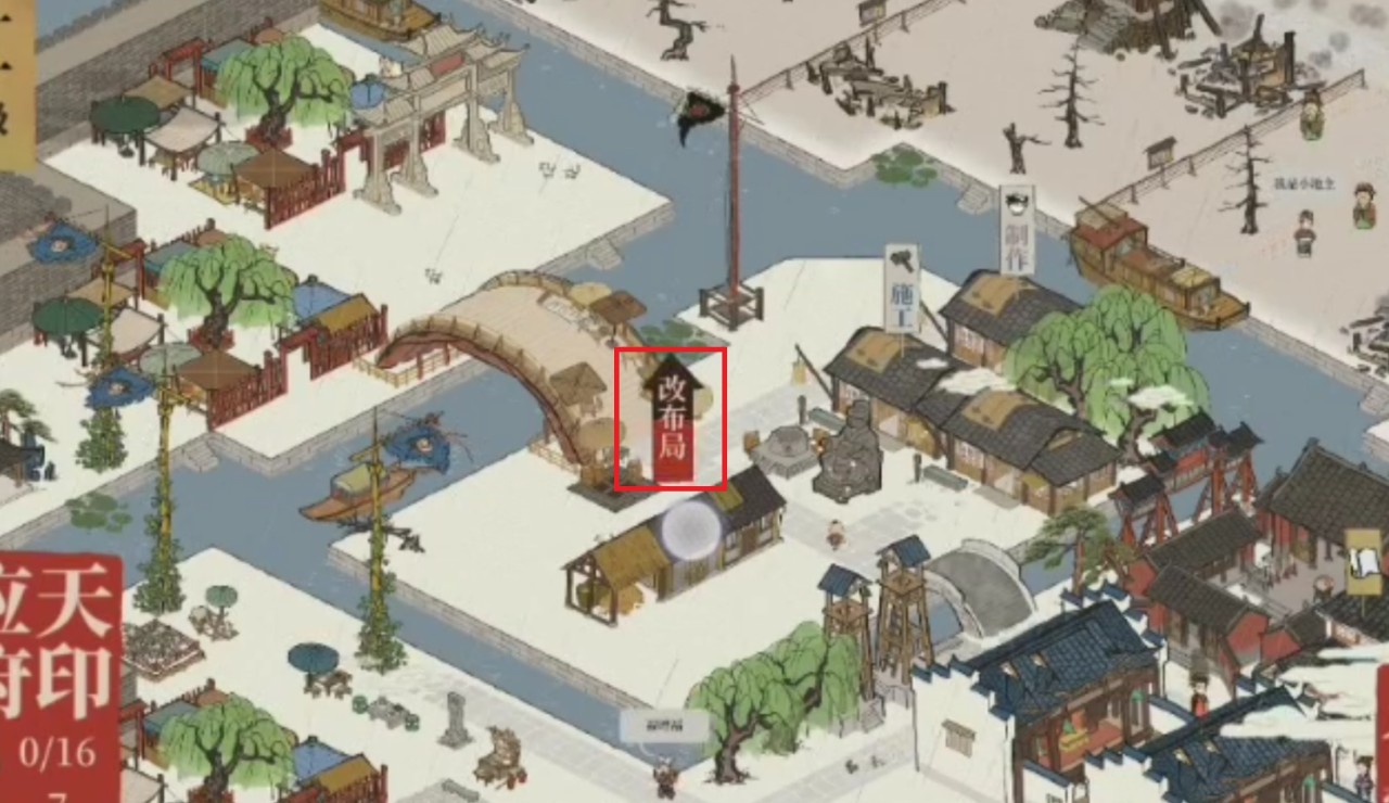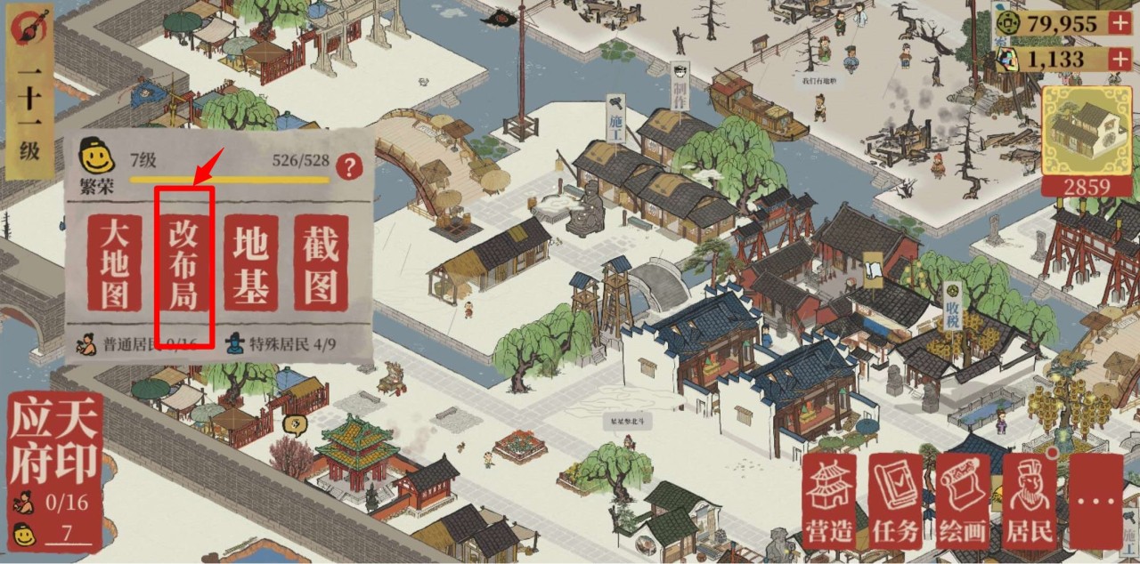 一:点击左下角当前城市的标志“应天府印”(或“苏州府印”等),在出现的菜单中点击“改布局”,进入修改布局的界面。