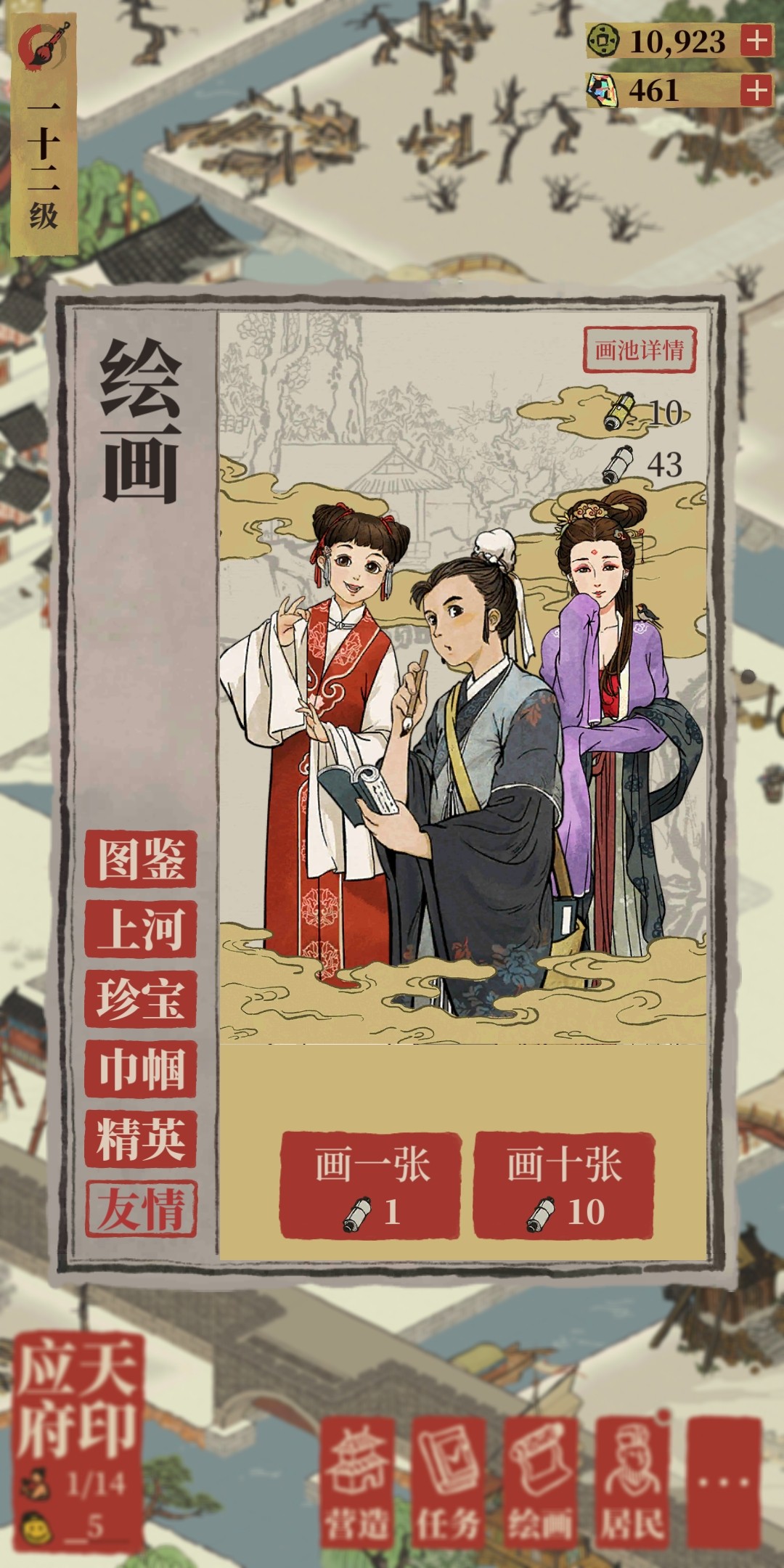 在杂货摊中兑换的友情画轴可在绘画中的友情卡池抽取人物,通常该卡池可爆出卿级人物,比如汤显祖、丽娘等。理论上玩家两天就可以攒满一次友情十连,重复获得的卿级人物将转化为碎片,可强化天赋技能,非常适合前期开荒使用。