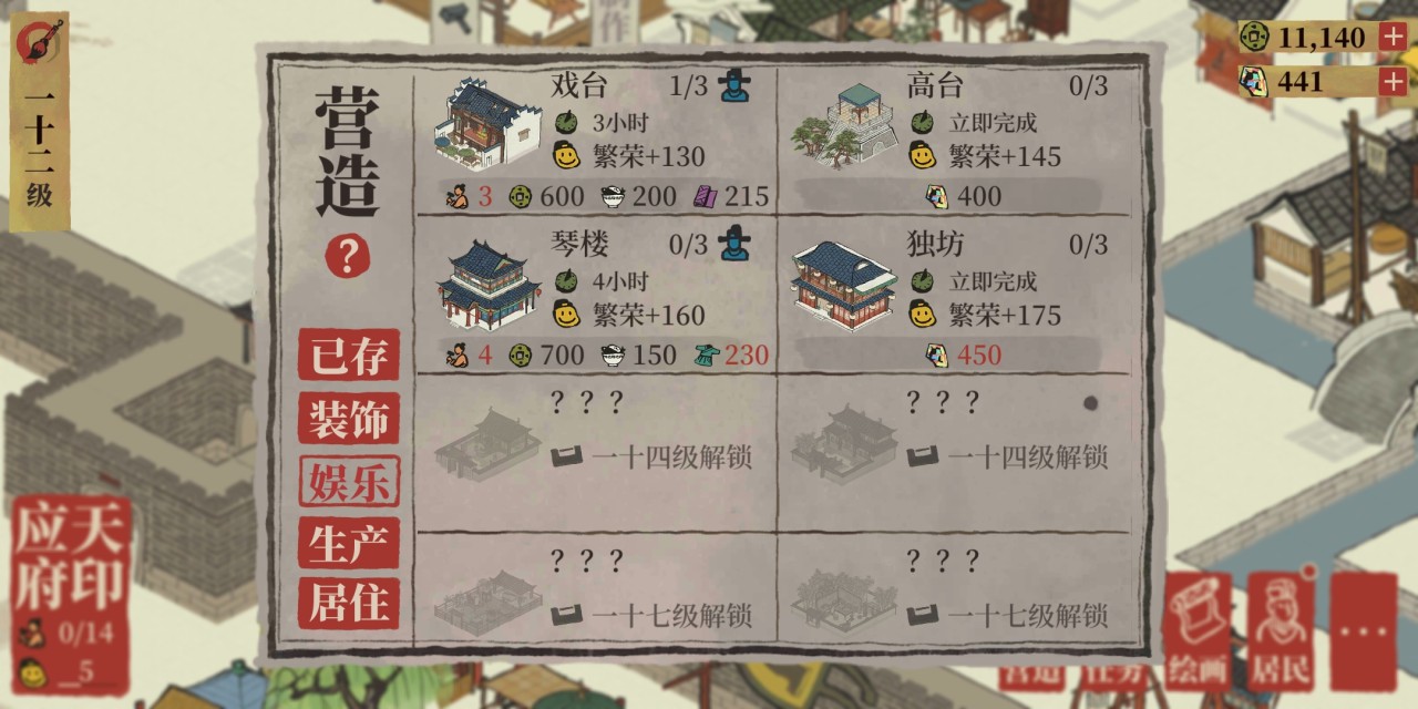 当城市的民宅数量一直不能增加时,城市发展就进入瓶颈期,此时就需要购买装饰性建筑。使用补天石即可购买高繁荣度装饰建筑,繁荣度等级提高可增加民宅数量。