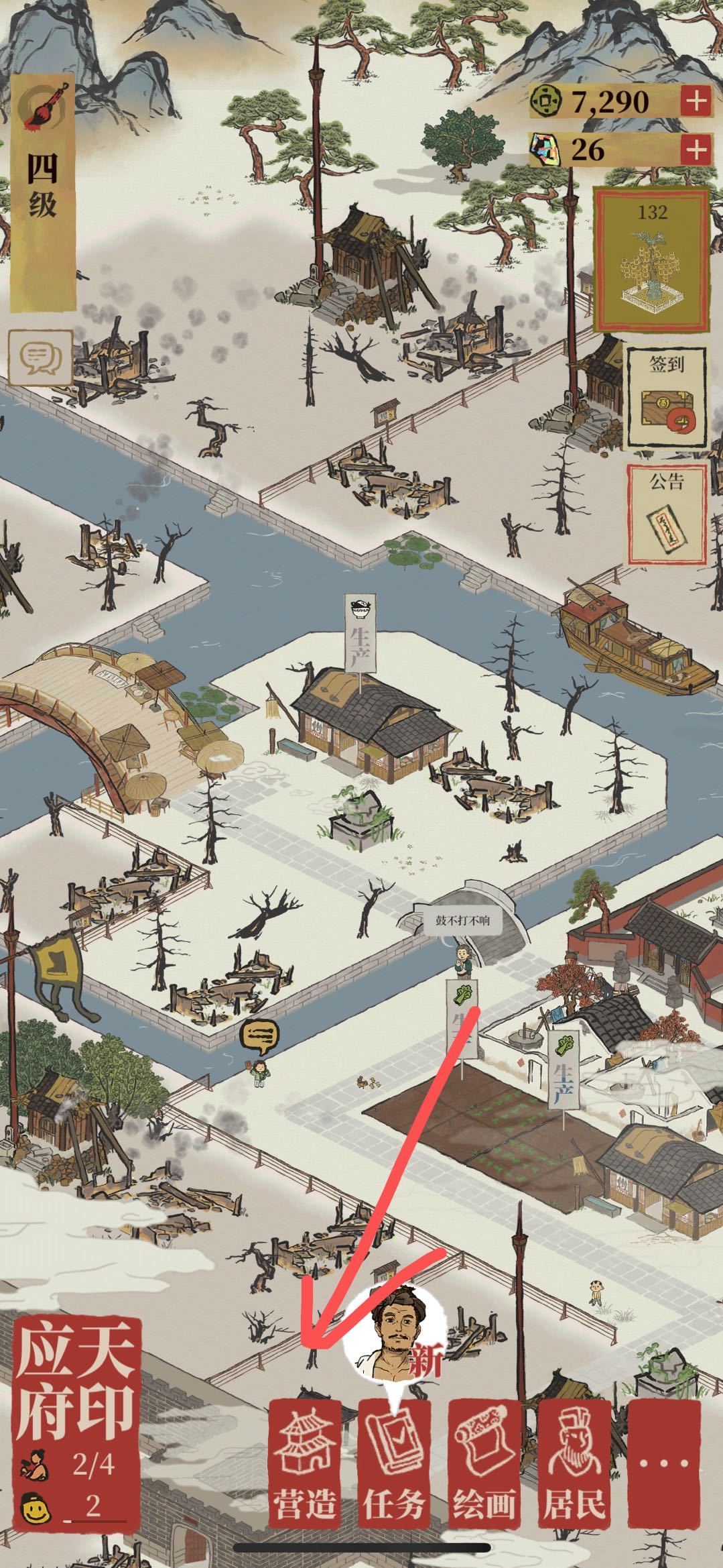 第一步:点击游戏主界面下方的菜单栏的营造图标进入营造的详情界面。