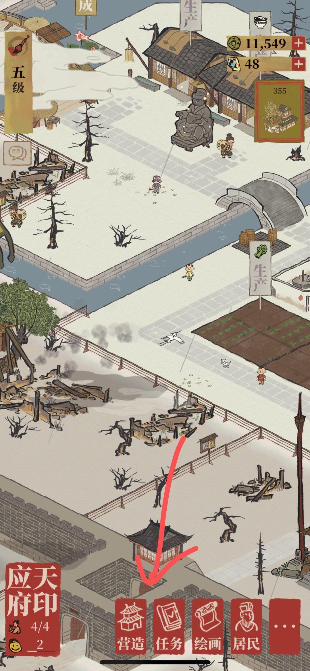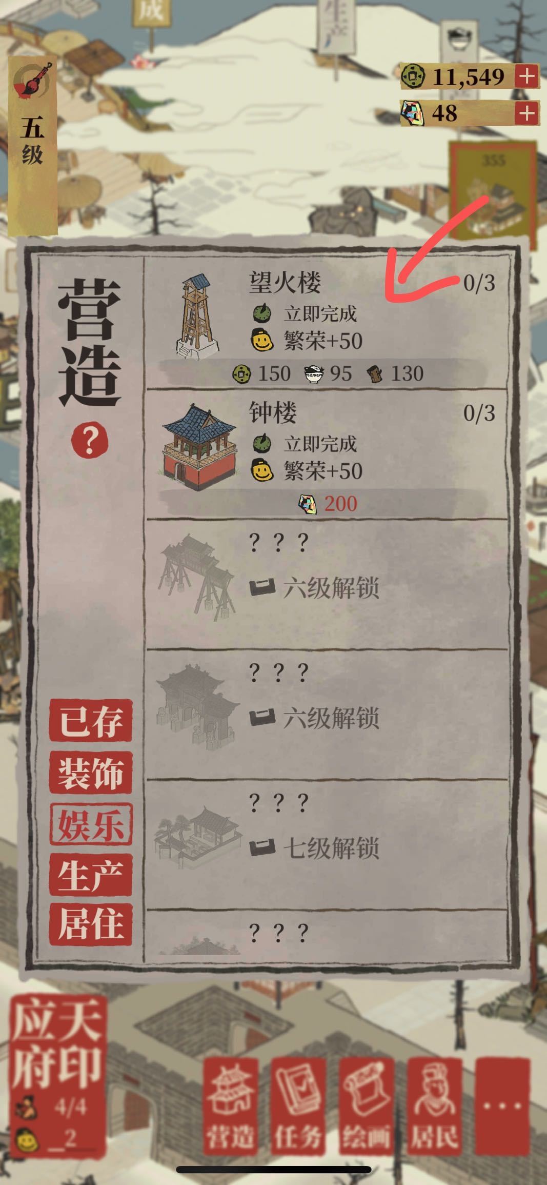 第三步:在游戏主界面下方的菜单栏中选择【营造】图标进入建筑建造的界面。