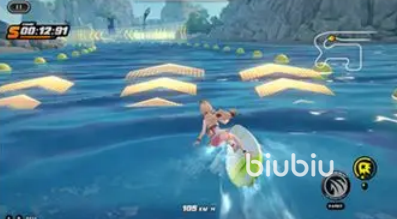 在活动开启以后,首先大家看到的是一个冲浪活动,在获得中大家将要操作爱丽丝踏上冲浪之旅,需要利用冲浪板在海上赛道中进行穿行,过程中可以使用漂移、加速等多种技能辅助,在完成挑战以后可以获得奖励。