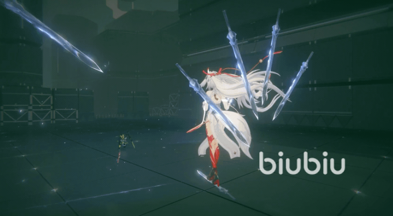 她的“飞光”能在明心镜状态下通过长按特殊技发动,此时会持续消耗剑势发动快速斩击,对敌人造成大量的物理伤害,若拥有观止效果,能让观止代替剑势的消耗,她的归尘能在剑势耗尽时通过长按特殊技使用,此时会对大范围内的敌人造成大量伤害。