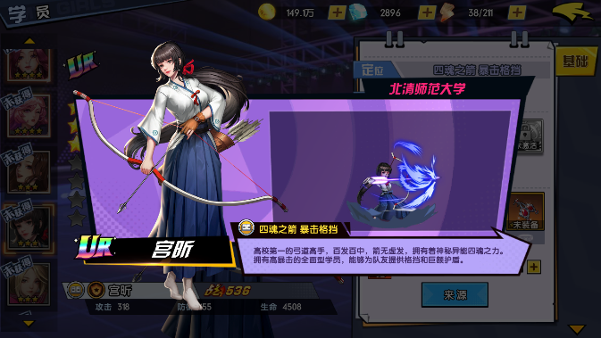 宫昕是个UR品质初始三星角色,目前在游戏中的竞技场非常的强力,算是必练角色之一。