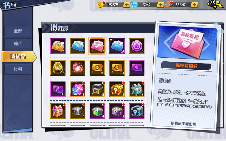 1、玩家获得的高校特招券可以在游戏中的背包来查看,但是无法直接在背包中使用,只有才卡池中才可以使用。