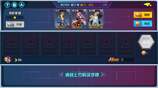 (2)在挑战之前是准备阶段,玩家可以使用“战牌币”在商店购买需要的角色。