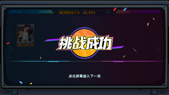 (8)在战斗中,上阵的每一张战牌都会对BOSS进行一次攻击,成功击杀BOSS则进入下一轮,未能击杀BOss则挑战结束,进入结算阶段。