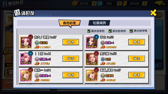 (4)记住要合理搭配你的阵容,如果阵容里同时包含了攻防技的学员,挑战者的属性将大幅降低!同时在考虑阵容的时候也不要忘记学校克制和同学校的属性加成哦!