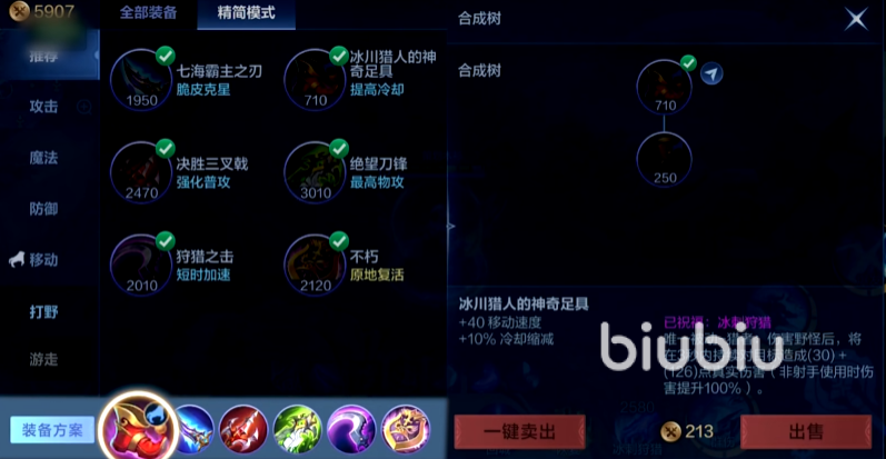 打野装与辅助装,直接与鞋子合并在一起,以打野为例,最开始买鞋子后就能预选狩猎升级效果,相当于预购了一种打野刀,到达条件后就可以获得该效果了,这样就等于是帮打野辅助节省了一个装备栏,这样搭配更灵活。