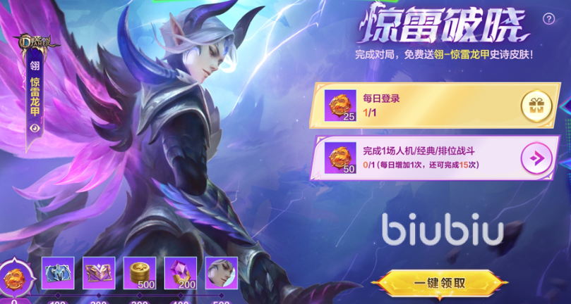 本次五一将会开启活动惊雷破晓。玩家们参与这个活动的话则是可以免费的领取翎的全新史诗皮肤惊雷龙甲。这个活动里面有不少的任务,玩家们只要完成任务便可以获取到奖励。在活动结束之后此皮肤将会正式上架商城。