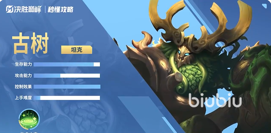 决胜巅峰古树的技能玩法大家都学会了吗,这个新的坦克英雄,虽然输出能力并不是特别突出,但是他能给队伍提供稳定的控制效果,让敌人的行动受到较大的限制,生存能力强,且技能招式简答,比较推荐玩家去使用。
