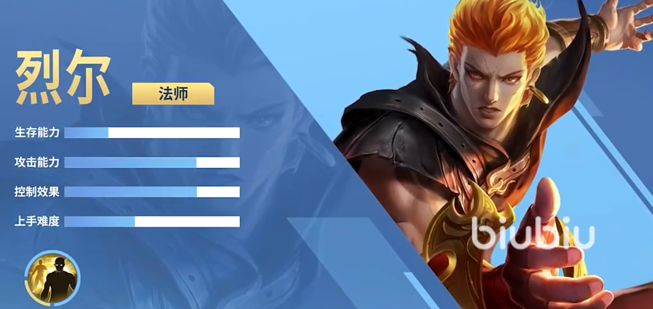 烈尔的被动是在他使用技能成功命中敌人时,会点燃目标造成持续性伤害,火焰附加到3层后会引爆,造成伤害并附加上眩晕效果,他的第一个技能会朝着前方释放出火球,命中后敌人会受到伤害以及减速。
