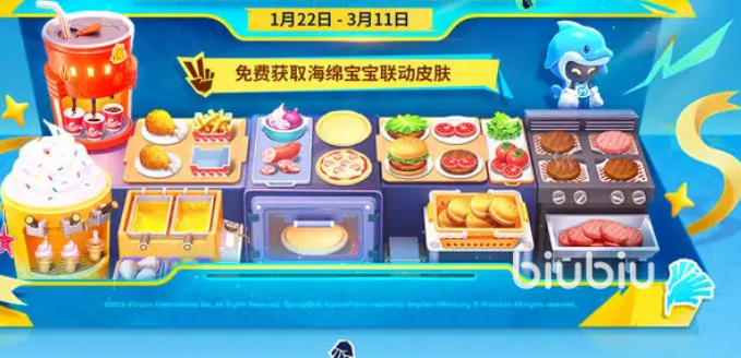 消耗美食币还可以对顾客、单局时间、餐厅升级、制作加速来进行升级,增加对局体验和收益,此外还可以帮助获取每日随机限时权益,1月22到3月11会上线派大星皮肤“鬼隆隆”首周打7折只要762钻石,1月22到2月4日累计登录,能免费获取联动语音和贝壳兑换券。
