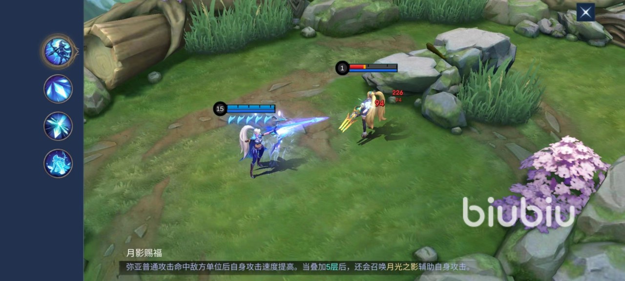 第1个推荐的就是射手英雄弥亚,这是一个操作简单持续伤害能力强的角色,自身在外观方面吸收了精灵族的特点,其他很多皮肤也都经过精心设计。在普通攻击命中目标后会提高自身攻击速度,最多能叠加到5层,有25%的攻速提升,这对于射手来说是很好的加成,在前期装备不到位的时候就能有较好攻击效果。另外当攻速叠满之后,还能够召唤月光之影,辅助攻击在伤害方面很出色。自身大招具有隐身和解除控制的效果,在使用之后直接进入隐身状态,将负面效果清空提高移动速度,这对射手来说是很好的保命能力,在前期对线时候,不用担心被抓问题。