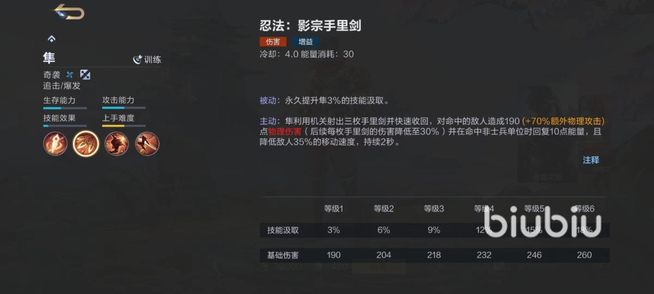 2024年04月01日 17:23 来源:指环宜阿柏怪相信大家从这个英雄的名字就可以看出,这是一个使用非常灵活的英雄,极其擅长追击打出爆发输出,上手难度方面中等,小编今天带来的是决胜巅峰隼技能效果详解。隼属于人类英雄中的东禹人,出生在东禹的赤影千里,作为影宗血脉,他和兄长从小就接受着严苛训练,在忍术方面有着极强的造诣。
