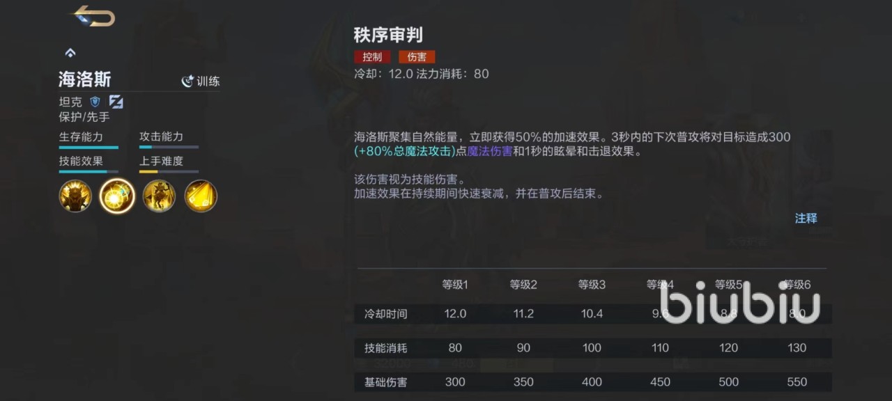 当然想要凭借海洛斯自己的输出打掉对方是比较困难的,但是冲散对方阵营以后,我方队友就可以直接发挥出输出优势。另外大招释放也要讲究方向,最好能将对方阵型直接切开。因为自身生存能力很高,所以二技能可以放心大胆的去开。