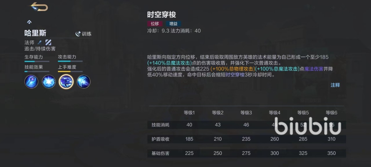 哈里斯在使用方面的难度比较高,因为它拥有多段位移,在场上非常灵活。哈里斯周围的敌人数量越多,混合汲取能力也就越强。一技能使用后创造出一个残影,和自己一起释放时空切割,对路径上的敌人造成伤害,二技能向指定方向位移后,自身获得护盾,接下来一次普通攻击获得强化效果。