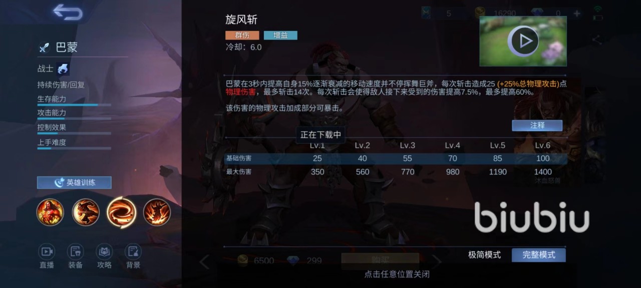 通过这些技能效果我们就已经搞清楚了,巴蒙的主要战斗方式和技能加点顺序。在一级时候先学习一技能,接下来主加二技能旋风斩,可以在线上对敌方进行有效消耗,再利用自己的被动回血,这样可以建立起血量上的优势。大招虽然是爆发性技能,但是一般留到最后使用,在实战中连招方面,先利用一技能位移直接冲向对方后排,而后开启二技能旋风斩,找到对方血量较低的开启大招收割。