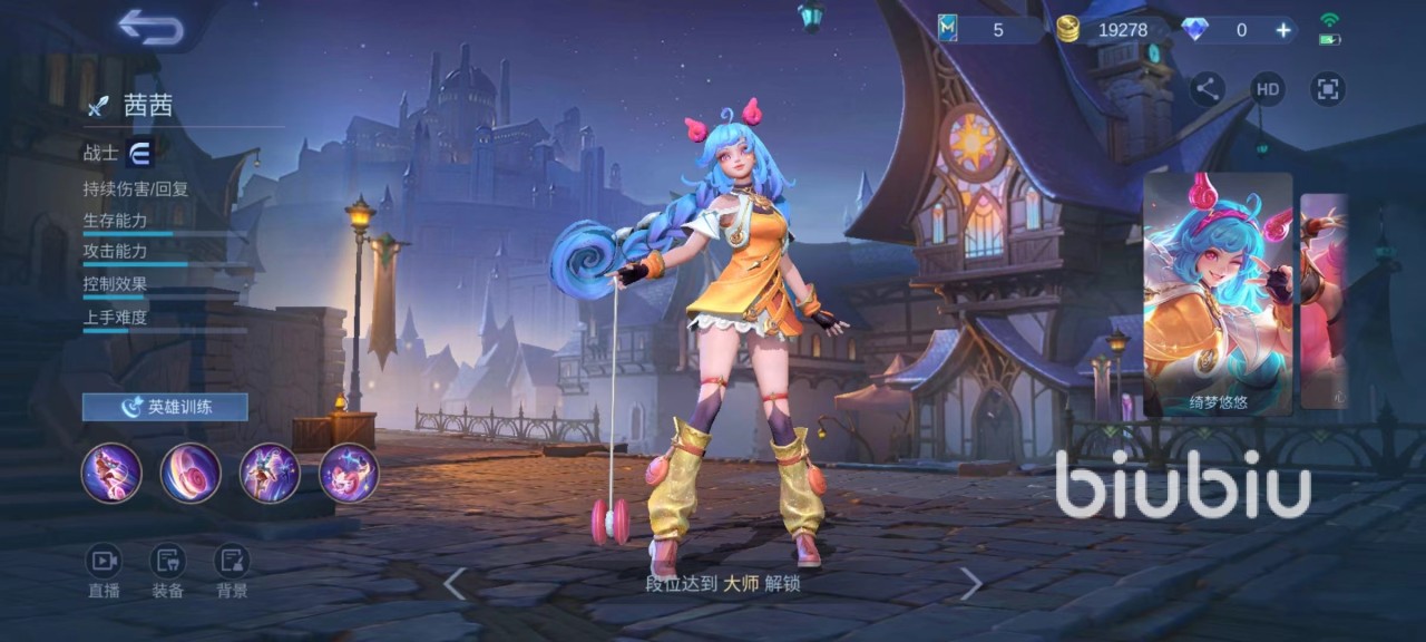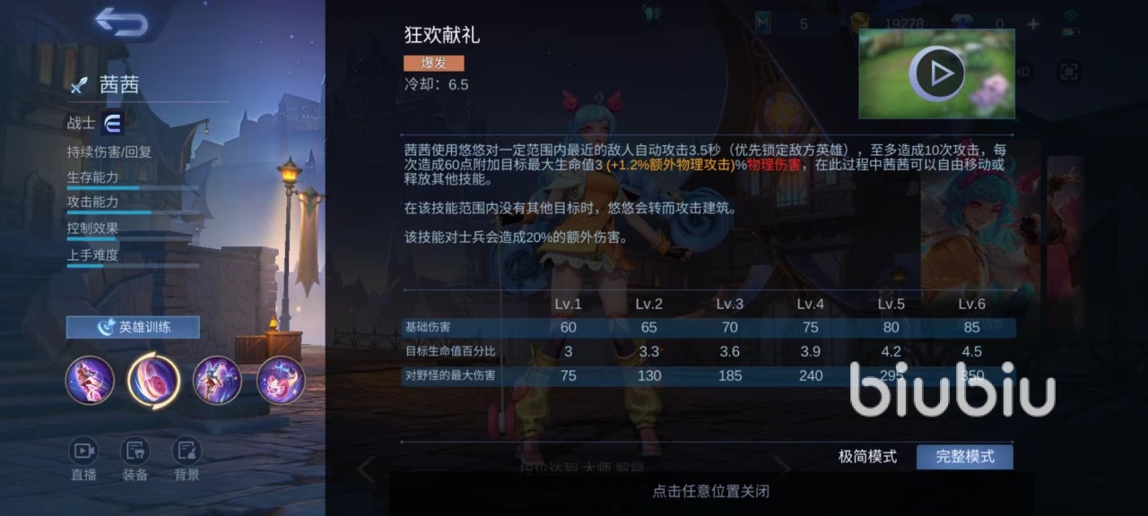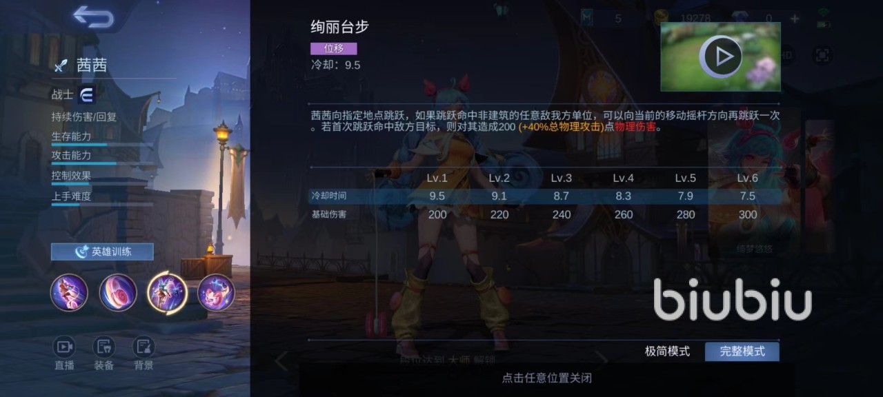 一技能使用手中的悠悠球对范围内敌人自动进行攻击,会优先锁定敌方英雄,最多造成10次伤害。每次还会按照目标最大生命值附加输出,在此过程中茜茜可以自由移动或者释放其他技能,如果在范围内没有其他目标,悠悠球也会去攻击建筑,也可以用于强拆防御塔。二技能使用后向指定地点跳跃,如果命中非建筑任意单位,都可以像当前移动摇杆方向再跳跃一次,如果首次跳跃命中敌方目标,则造成物理伤害。要注意的是,无论命中的是敌我双方任何单位,都可以触发再跳跃效果,这样就有了一定的位移能力,但是操纵起来需要多练习几次。