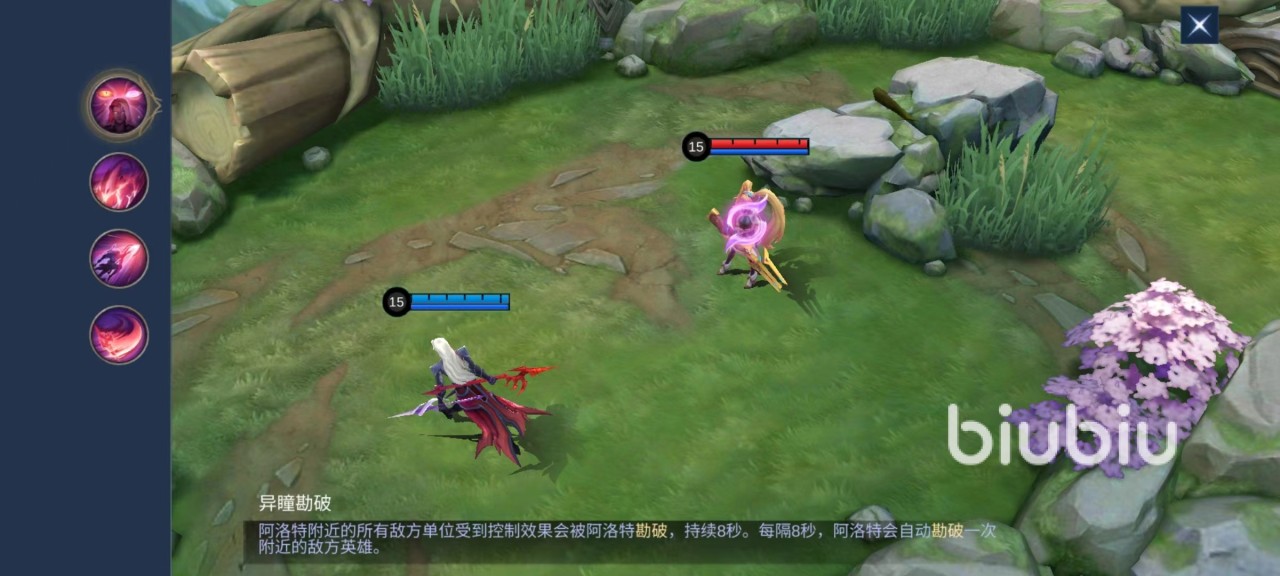 阿洛特可以对附近所有受到控制效果的敌方单位进行勘破,持续8秒钟,每隔8秒钟阿洛特就会自动勘破一次附近视野内的敌方英雄。一技能挥舞手中长枪向前方砸下,造成范围伤害和短暂眩晕,如果目标处于长枪的尖端,则造成更长时间的眩晕效果。二技能向目标单位突进造成伤害,如果该目标已经被标记,则本次伤害翻倍,并且技能冷却时间刷新,同时恢复自身生命值。
