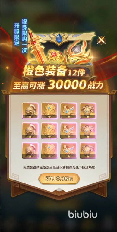 这个游戏里有很多充值6元的礼包,并不是每个都值得氪金,首先比较推荐的就是全民礼包,可以得到500的升阶丹,限时活动氪金6元就能获得黄金装备,相对来说收益也非常不错。