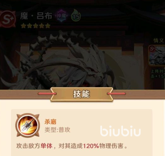 魔吕布的普攻是对单体敌人造成120%伤害,他的技能非常独特,就是无法放出技能,但每次普攻时会积攒怒气,怒气值越高打出的伤害也就越多,他的特性是每进行四次普攻会对群体敌人打出一次无视防御的攻击。