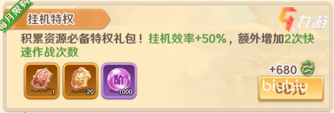 挂机特权:能够多两次资源收益的机会,只要解锁了挂机特权,直接购买即可,能够提前与其他玩家拉开差距。