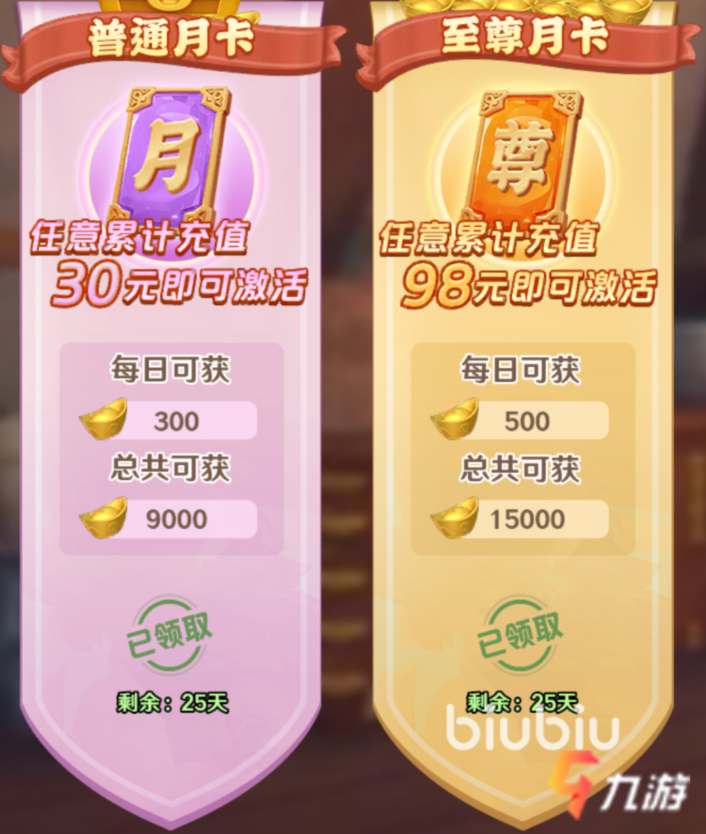 月卡:无需额外购买,只要累计充值就能自动激活,建议是在购买了挂机特权的情况下再充值30元购买[每周招募礼包],将至尊月卡一起解锁,性价比会更高。
