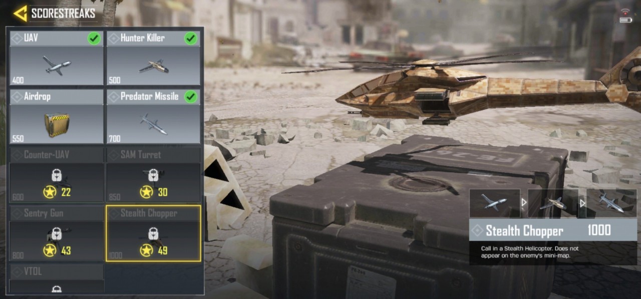 介绍:召唤一艘武装直升机进行支援,使用方法很特殊,需要对着想要派遣直升机的地方点一下即可。